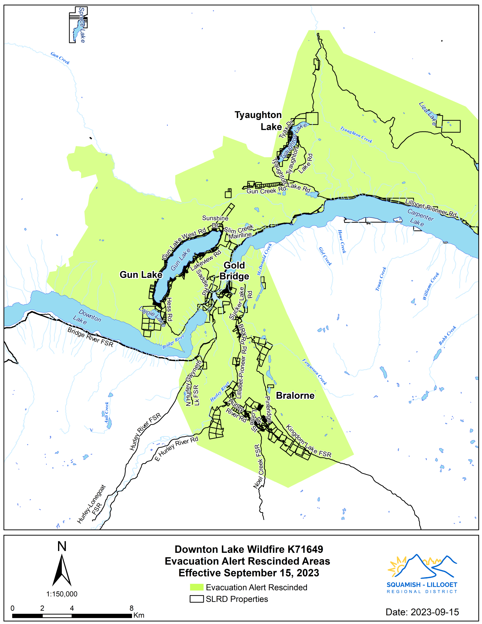Effective September 15, 2023 at 1100 hrs, the Squamish-Lillooet Regional District has rescinded the Evacuation Alert applying to the following areas: